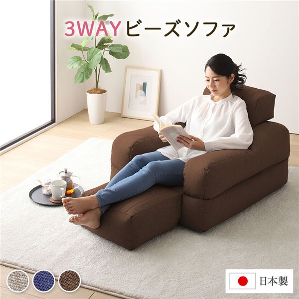 ■3WAY ビーズソファー 1人掛け 幅70cm ブラウン 1人用 ビーズクッション スツール イス バーチェア 椅子 カウンターチェア 軽量 折りたた