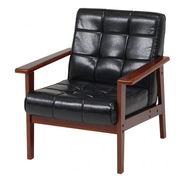 ■ソファー パーソナルチェア (イス 椅子) 幅99cm 1人掛け ブラック 脚付き 肘付き 合成皮革 合皮 フェイクレザー 姫系 フェリーニ リビン