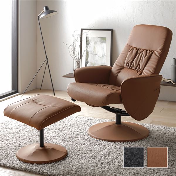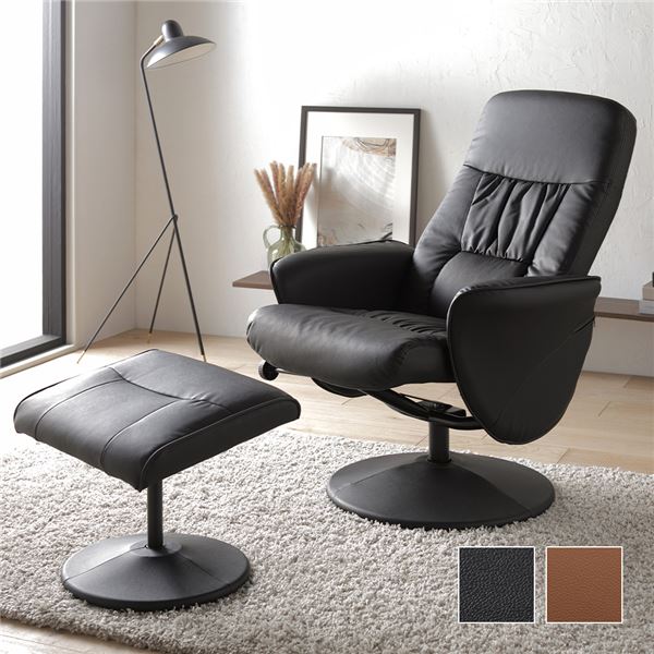 ■リクライニングチェア (イス 椅子) 約幅78cm ブラック オットマン 足置き 付き 360度回転式 角度調整可 合皮 フェイクレザー パーソナル