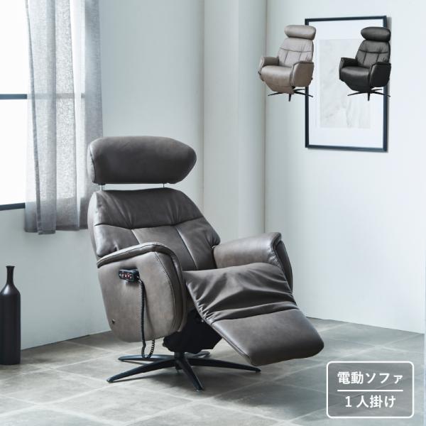 ■電動 リクライニング ソファ エグゼクティブ 電動パーソナルソファ グレージュ ブラック リクライニングチェア 一人掛け スマホスタンド