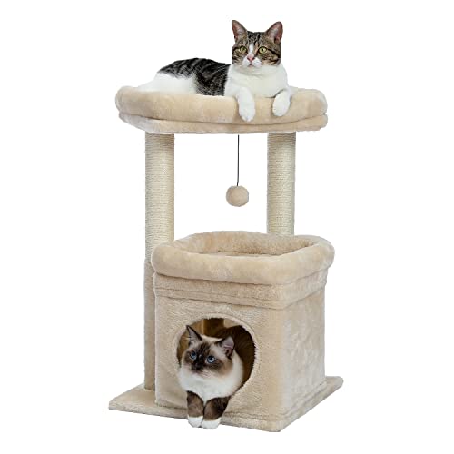 ■PAWZ Road キャットタワー 小型 ミニタイプ 爪とぎポール 爪磨き 猫の遊び場 小型 やすい 頑丈 安全 猫ハウス付き 見おろし展望台 68cm