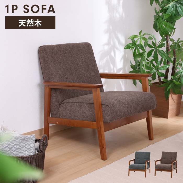 ■ソファ 1人掛け 1人用 ソファー 椅子 コンパクト 木製フレーム 厚手クッション ファブリック シンプル 高級感 おしゃれ