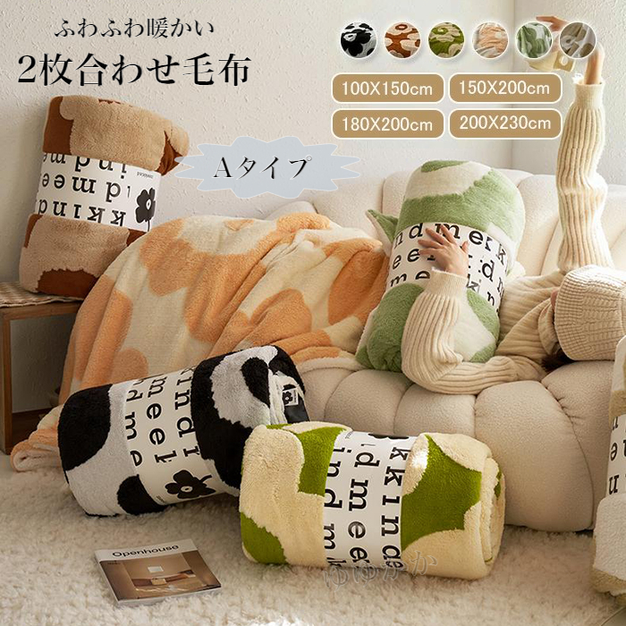素材 Bタイプ マイクロファイバー(ポリエステル100%) サイズ:90×100cm ※90×100cmサイズは毛布タイプのみ、ファスナーなし※ 商品説明: 【二枚合わせで保温性抜群】 マイクロファイバーとシープボア2枚の毛布生地を重ねて縫い合わせて作った厚手毛布です。 2枚合わせにすることで、生地と生地の間に空気の層が生まれるため、空気の断熱効果により保温力アップします。 【様々な用途】寒い季節には掛け布団の間に挟むように使うことで、敷き布団の上にシーツのように敷いて保温力を実感できます。 また、ソファー用毛布・旅行用毛布・お昼寝用毛布・車用毛布・子供用毛布として、いろんな場合で使用される毛布です。 【お手入れ方法】家庭用の洗濯機で丸洗いでき、いつも清潔に保てます。洗濯ネットをご使用の上、他のものと分けて洗うことをお勧めします。漂白剤の使用とタンブラー乾燥は避けてください。毛玉や糸切れが発生した場合は無理に引っ張らずハサミ等で取り除いてください。漂白剤と乾燥機のご使用はお避け下さい。