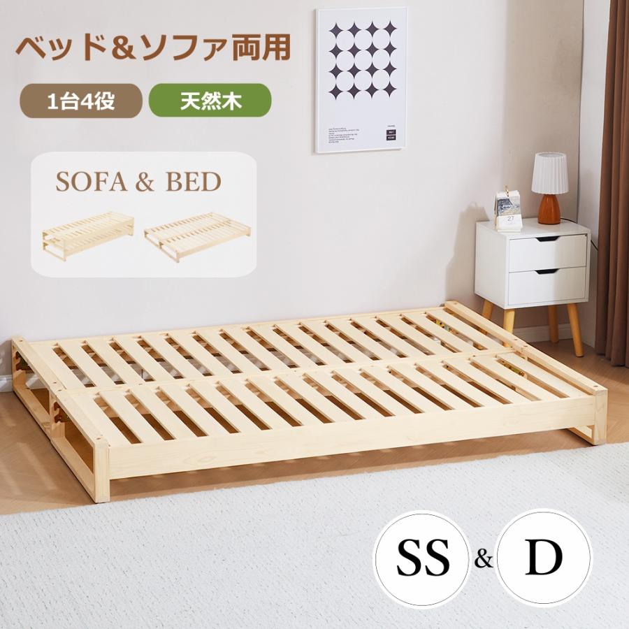 ■ベッドフレーム 親子ベッド ダブル セミダブル 耐荷重120kg 幅70cm/140cm 省スペース 子供 大人 無塗装