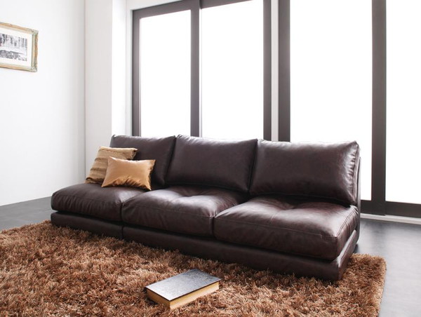 ■ソファー ソファ 3人掛け 三人掛け 高級 おしゃれ リビング 座椅子 ローソファ レザー 革 合皮 (セット)3P 肘無 ダークブラウン )