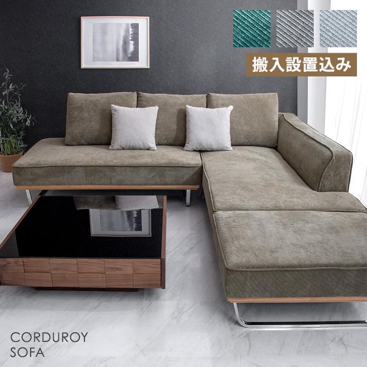 ■ローソファー 左肘掛け 座面広い ワイド ソファ 3人掛け グレー カウチ コーナー カウチソファー ソファー 大型 北欧 フロアソファ ロー