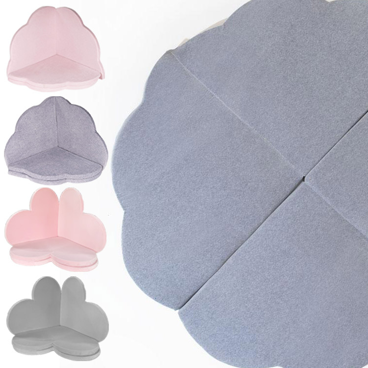 ■【訳あり】プレイマット ベビー フロアマット 120cm ソファ クラウド ハート グレー ピンク クッションマット コーナー 厚手 折りたたみ
