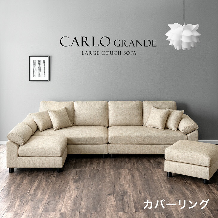 レイアウト自由自在 洗える カバーリング ソファー 4人掛け レザー 布地 カウチソファー L字 オットマン 4P ソファ l字 三人掛け おしゃれ グレー ベージュ ブラック ブラウン モカ【商品番号:31200009】