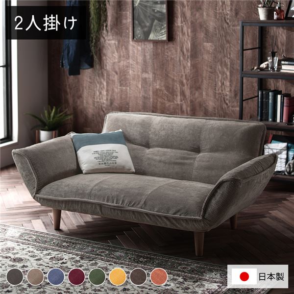 ■リクライニングソファ 2人掛 コーデュロイ生地 ベージュ 脚部 ナチュラル 日本製 国産 ローソファ 低い フロアタイプ ロータイプ フロア