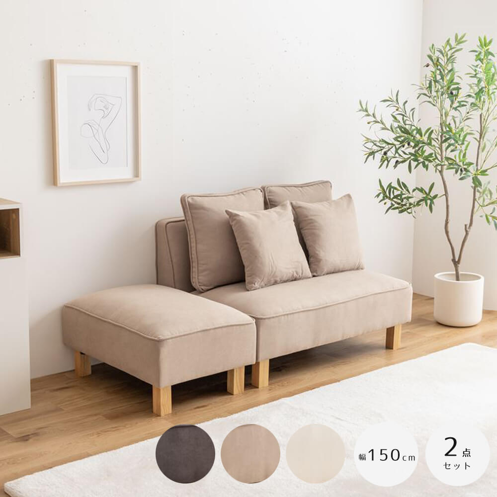 ■2人掛けカウチソファ 2点セット ソファー フロア ロー ユニット セット ファブリック 2P 3P 二人用 三人 I字 低め