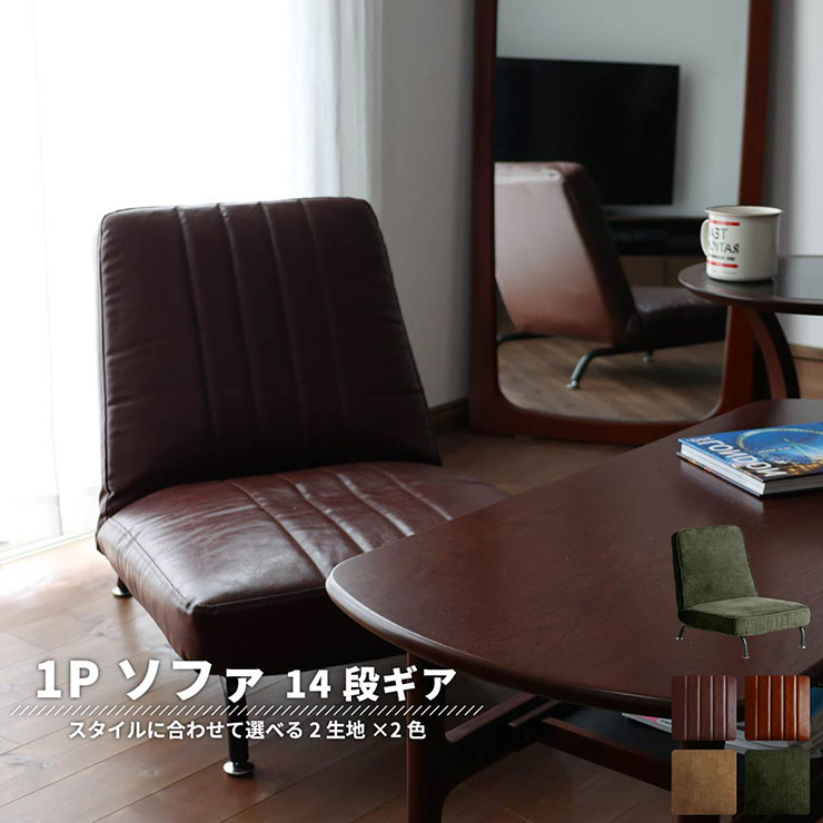 ■ソファー 14段ギア 1Pソファ 2タイプ 4色対応 ソファ 1人掛け ローソファー ダイニングソファー ロータイプ リクライニングソファ フロア