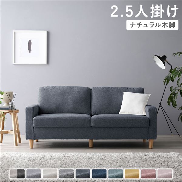 ■ソファ 2.5人掛け 〔 カバー:ナイトグレー 脚:ナチュラル 〕 肘付き 洗える ウォッシャブル カバー 脚取り外し可 ローソファー フロア