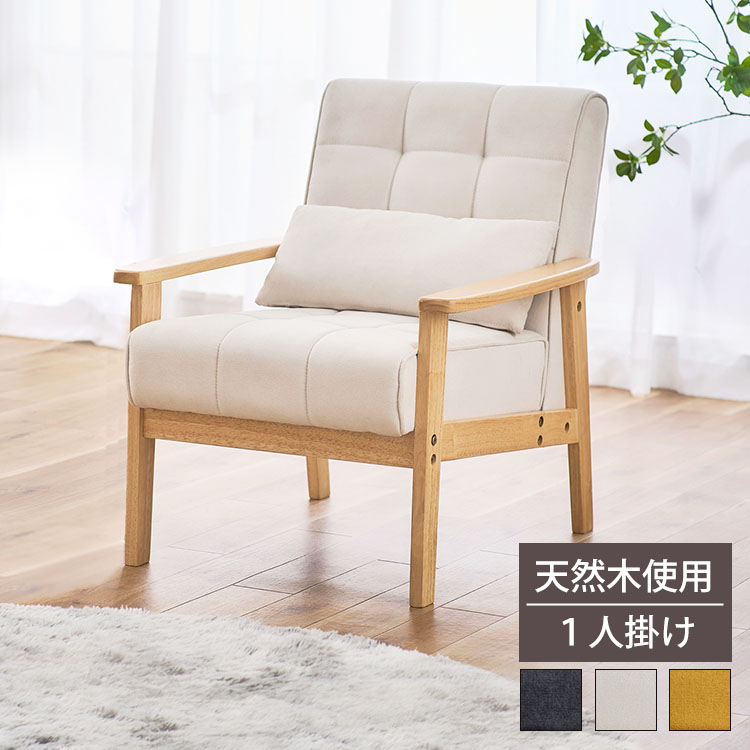 ゆったりくつろげる、私だけのソファ。温もりを感じる天然木フレームとやわらかな印象のファブリック生地で仕上げ、お部屋にやさしいナチュラルな雰囲気をプラスします。いつもの生活がちょっと贅沢になる、一人掛けソファ。おうち時間をリラックスして過ごすことができます。天然木ならではの温かみのある質感。天然木を使用しているので、日常に本物の木のぬくもりを感じられます。張り地にはファブリック生地を採用。夏のべたつきもなく心地よい肌触りでお使いいただけます。★お客様組立★●商品サイズ(cm)幅約64×奥行約76×高さ約76●耐荷重約90kg●主要材質本体:天然木・合板木枠部:天然木張り材:ポリエステルクッション材:ウレタンフォーム●必要工具軍手、プラスドライバー●カラーダークグレー、オフホワイト、マスタード※2人での組み立てをおすすめします。※耐荷重は測定値であり、保証値ではありません。