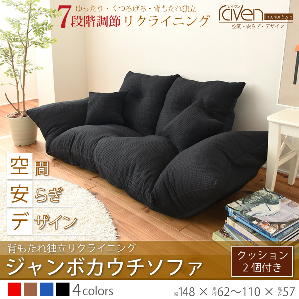 ■2人掛け リクライニングソファ クッション付 リクライニング カウチソファー ローソファー フロアソファー 2人掛け ラブソファー フロア
