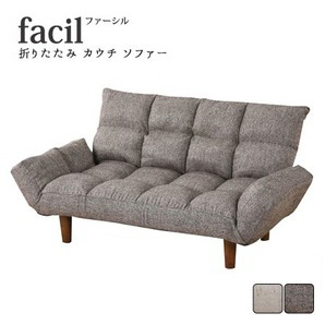 ■facil【ファーシル】折りたたみ カウチソファ 幅115cm 奥行き55~67cm ソファ 二人掛け 2人掛け 2P リクライニング ウレタン(代引不可)【