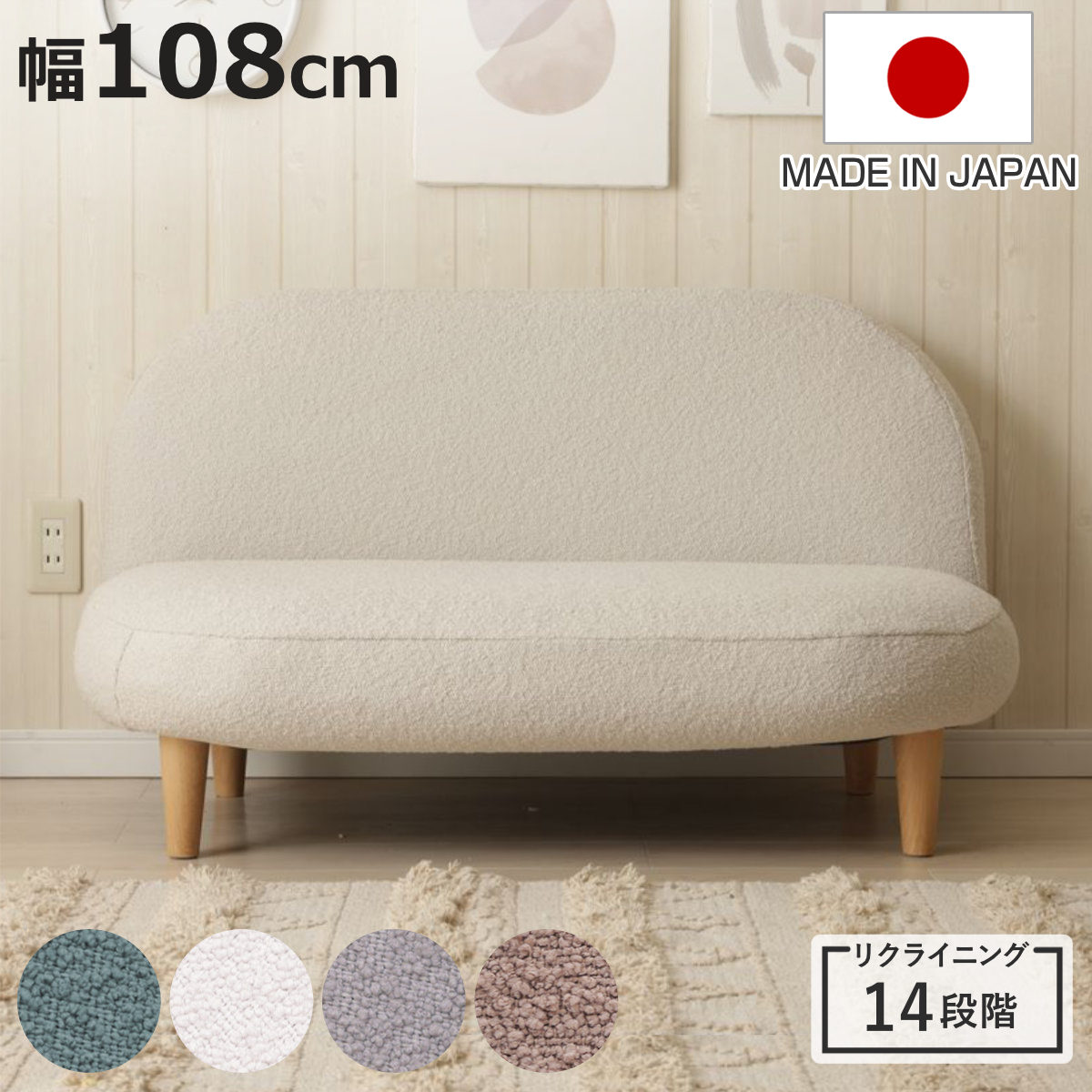 ■ソファ 2人掛け 幅108cm ブークレ生地 コンパクト ラウンドソファ ( ソファー 二人掛け 一人掛け リビングソファ リクライニング 14段階