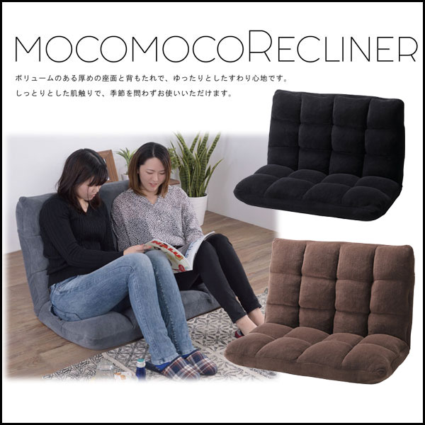 もこもこふわふわの素材が気持ちいいリクライナー 人気のブラックとブラウンをご用意しました。 ふかふかの座り心地でオールシーズン快適にご使用いただけます。 14段階リクライニング機能でお好みの角度に調節できます。 ◆北海道・沖縄・離島は追加送料がかかります。 ▼▼▼ ●フロアチェア ●ワイドフロアチェア