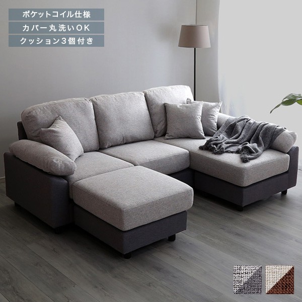 ■カウチソファ ソファ カウチ ソファー ファブリック 5人掛け 4人掛け コーナー L字 カウチソファー L字ソファ l字 コーナーソファ ポケッ