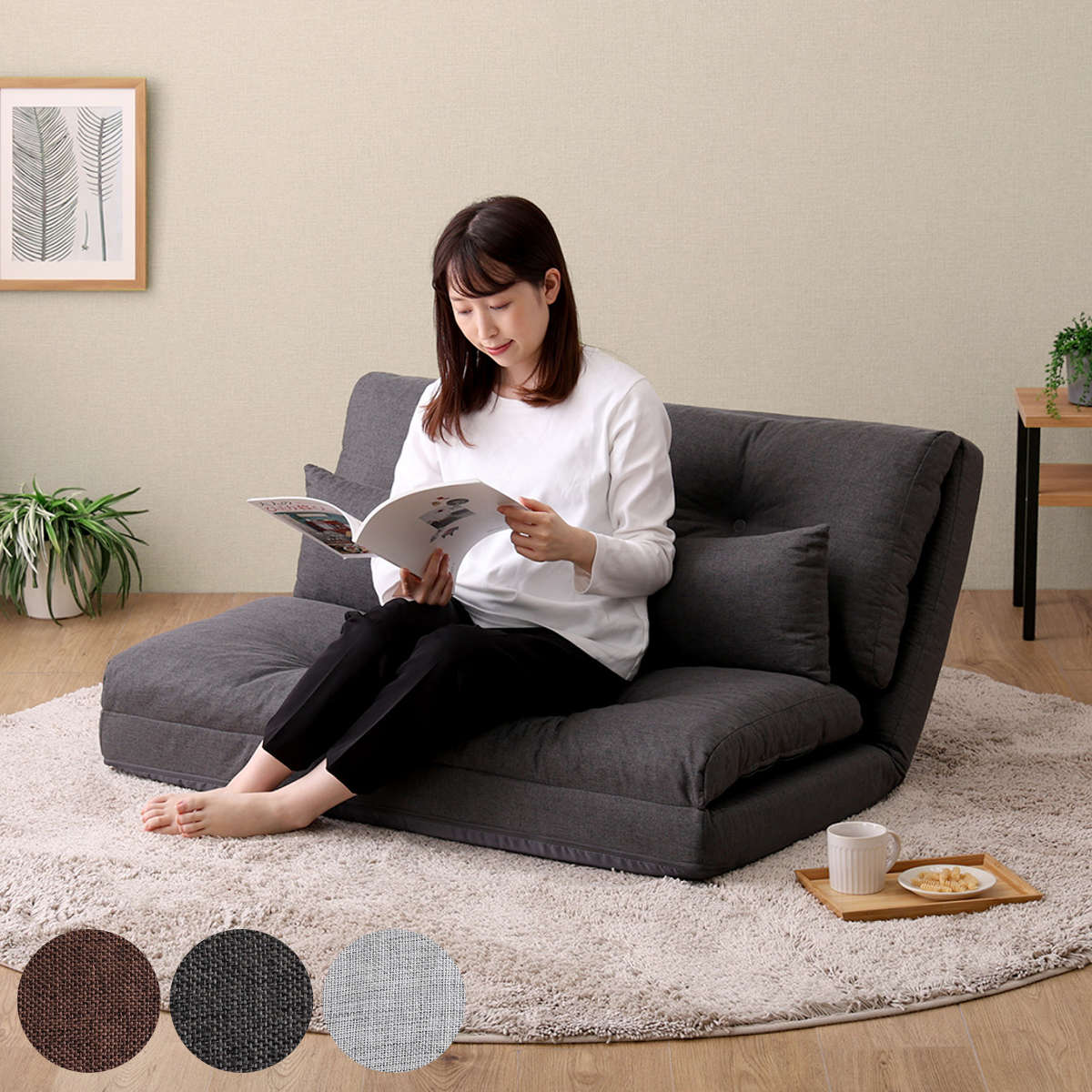 ■座椅子 2人掛け 3wayソファ 幅110cm Paljon ( 形が変えられる ソファ リクライニング フロアチェア カウチ フラット ベッド ゆったり ワ