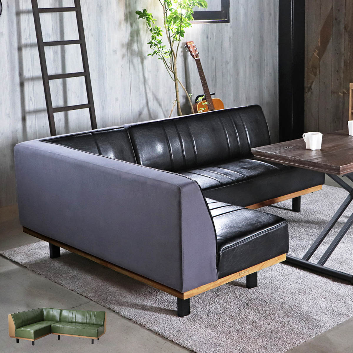 ■ソファ 2点セット L ベンチ+カウチ 2人掛け PULLEY LDSOFA SET ( ソファー リビングソファ 左肘 レイアウト 自由 L字 セパレート レザー