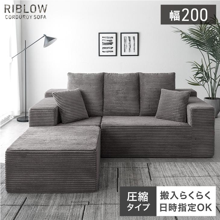 ■圧縮 ソファ 3人掛け コーデュロイ カウチソファ 幅 200cm フロアソファ コーナーソファ 3P リビングソファ ソファー カウチ カウチソフ