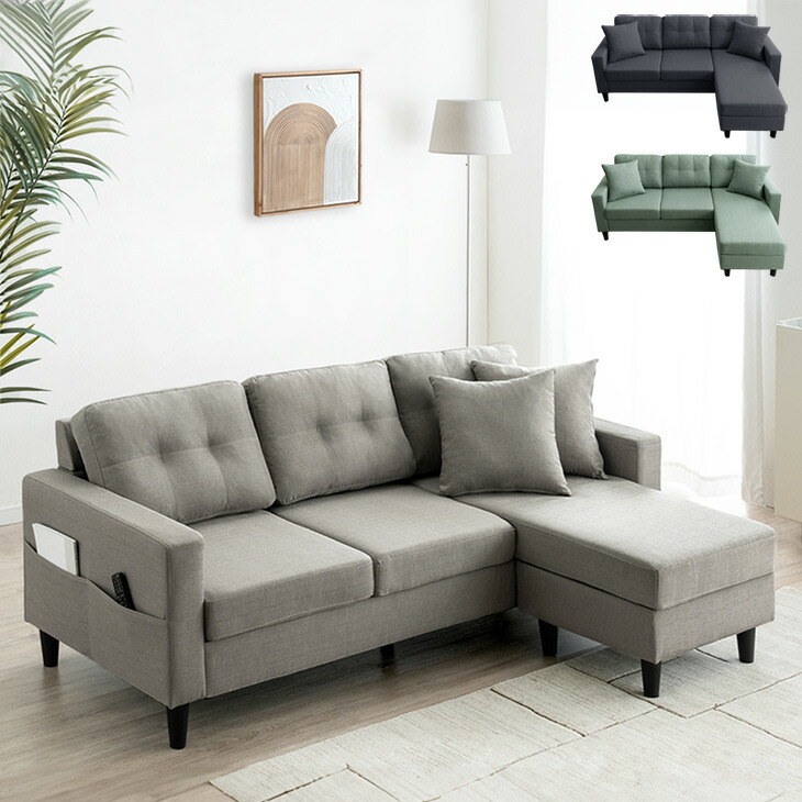 コーデュロイファブリック ソファ コーナーソファ 肘付きソファ 3人掛けソファ 3Pソファ L字 l字型 sofa 3人用 ウレタン 座面 3人 3P 三人掛け クッション 布 北欧 おしゃれ かわいい