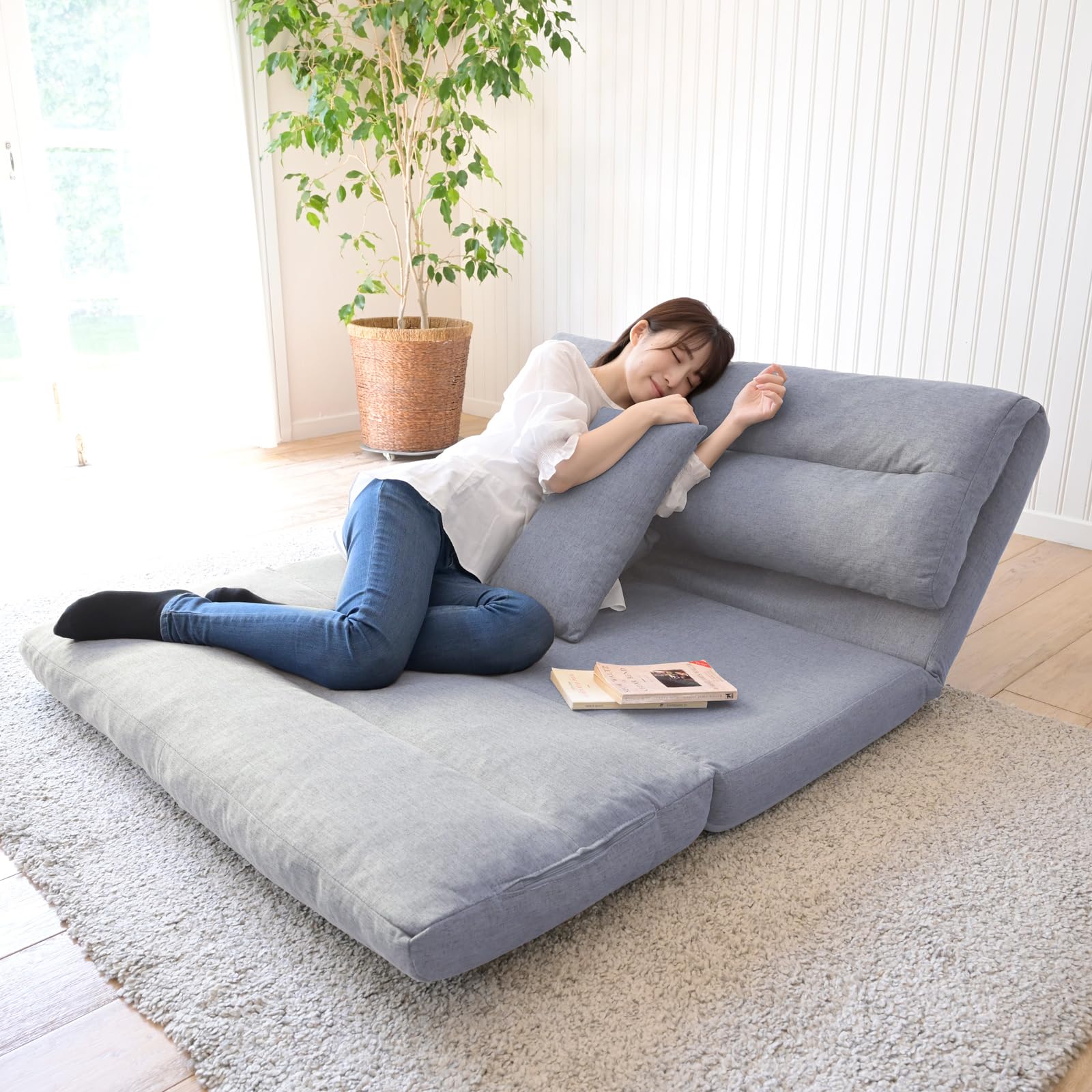 ◆商品名:[山善] ソファ ソファーベッド カウチ 3WAY 日本製 ゆったり 一人掛け クッション付き 腰部14段階 リクライニング 簡易ベッド ローソファ