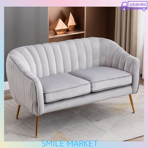 ■ALTROBENE 2人掛け ソファー ベルベット ソファ モダン 一人暮らし 座り心地が良い カウチ 組み立ても簡単 リビングソファ グレー