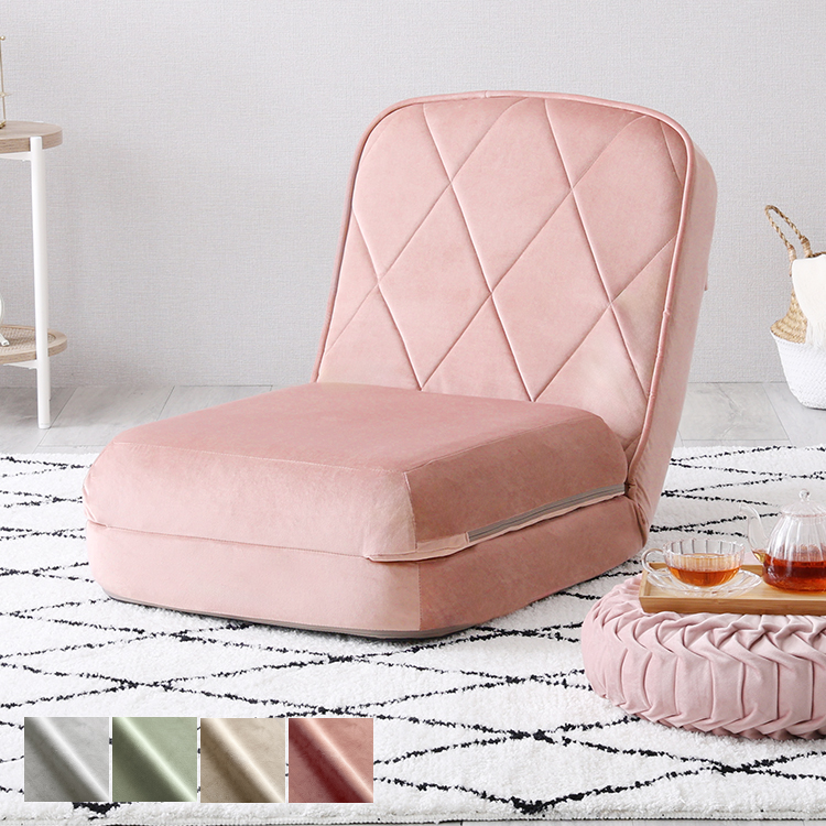 ■リクライニングソファベッド 一人掛け ピンク 全4色 ソファ・カウチ・ベッドの3way 日本製 14段階のリクライニング かわいい