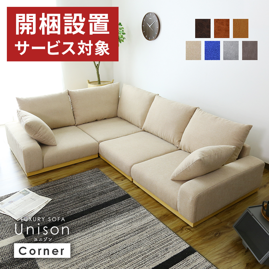 ■開梱設置付き ローソファー ソファ 3人掛け レザー調 L字 コーナー カウチ こたつ クッション ユニゾンコーナー インテリア家具 おしゃれ