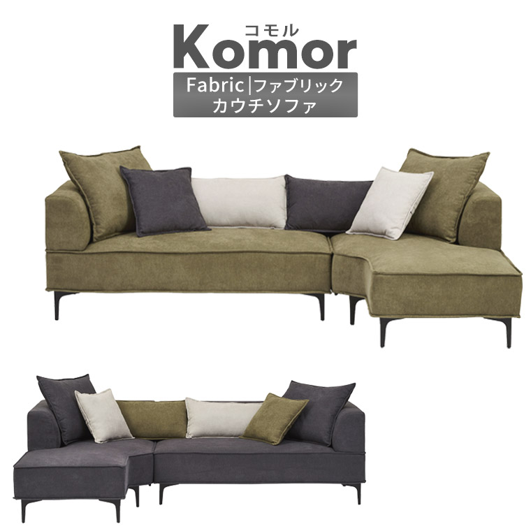 ※北海道、東北、沖縄、離島につきましては別途送料がかかります。ご注文後メールにて金額をお知らせ致します。■サイズ全体:幅226×奥行150×高さ62(座面高38cm)2P片肘:幅141×奥行84×高さ62(座面高38cm)カウチ:幅85×奥行150×高さ62(座面高38cm)重量:58kg■材質本体:ファブリック内部:ウェービングベルト/Sバネ背:ウレタンフォーム座面:ウレタンフォーム■詳細お掃除ロボット対応クッション6個付き2Pソファとカウチソファの配置次第で様々なレイアウトを楽しめるカウチソファ。低めに設計された背もたれはお部屋に圧迫感を与えません。カラーはカーキとダークグレーの2色展開です。お掃除ロボットにも対応しています。購入時はカラーとタイプ(右カウチ・左カウチ)をお選びください。※撮影及び表示画面の関係で、実際の色と異なって見える場合がございます。