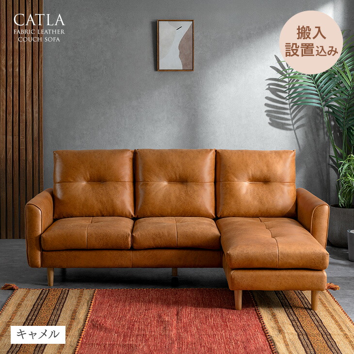 ■【本日P5%還元】 【搬入設置込み】 ヴィンテージ調 カウチソファ ファブリックレザー 左右変換OK カウチ ソファ コーナーソファ L字ソフ