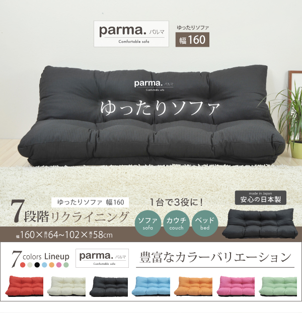 【サイズ】 [外寸]幅157.0×奥行64.0〜102.0×高さ58.0cm 【材質】 [ソファ本体]スチールパイプ・ウレタンフォーム [ソファ表地]ポリエステル100%(ホワイトのみ合皮) 【備考】 ・背もたれ 7段階調節 ・撥水加工(ホワイト以外) ・完成品 ・生産国:日本製 【送料】 送料無料 (商品代金に含まれております) (※北海道・沖縄・離島は別途送料が必要になります。お問い合わせください) ※お届けは玄関渡しです。