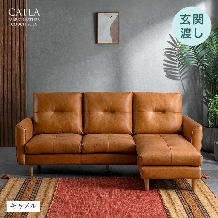 ファブリックレザー カウチソファー 3人掛 カウチ ソファー コーナーソファー L字ソファー リビングソファー コーナー ソファ 脚付き ブラウン キャメル ヴィンテージ調 北欧 おしゃれ【商品番号:33020035】