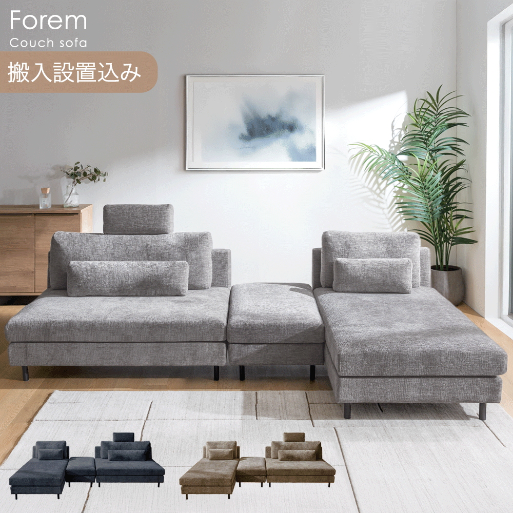 ■【搬入設置込み】 レイアウト自在! カウチソファ 左右変換OK スチール脚 カウチ ソファ ソファー コーナーソファ クッション オットマン