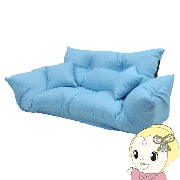 ■ソファ カウチ ソファベッド ラブソファ 2人掛け リクライニング ロータイプ ゆったり クッション2個付き ブルー