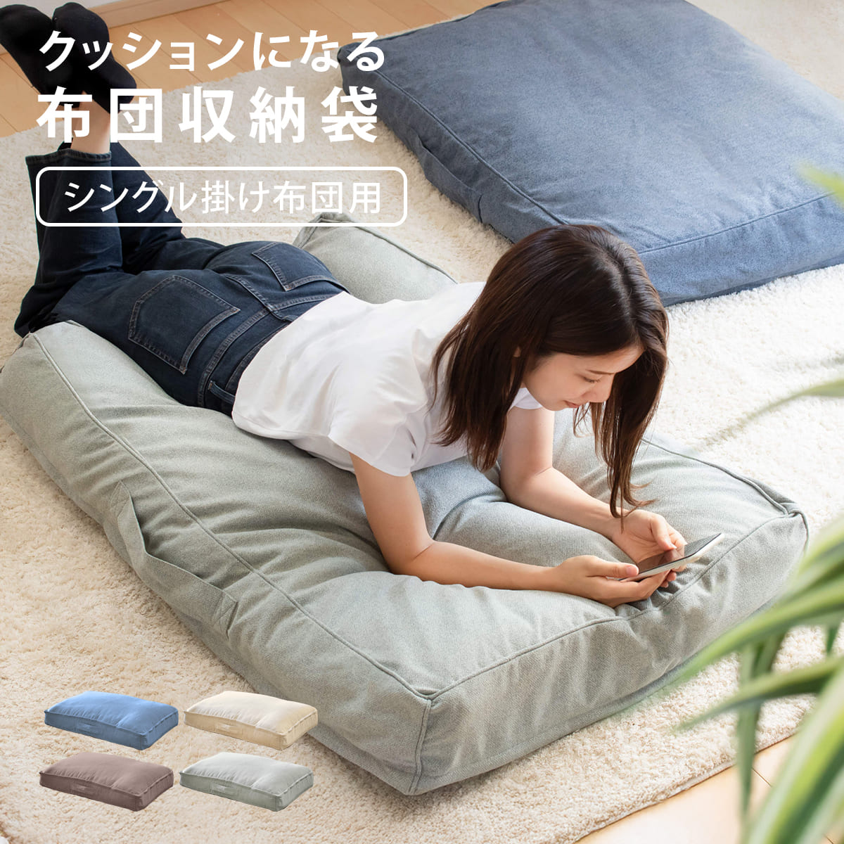 ■布団収納袋 布団収納クッションカバー 長方形 掛ふとんシングル1〜2枚用 ( 布団収納 クッション ソファ 収納 布団 ふとん収納 掛け布団