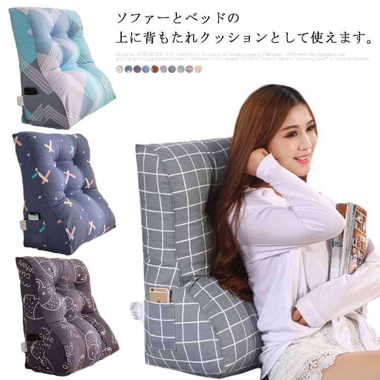 ■ベットの上 座椅子 クッション ポケット付き まくら ソファ 腰枕 カバーが洗える レストクッション 背もたれ 自宅用 年寄り テレビ/テレ