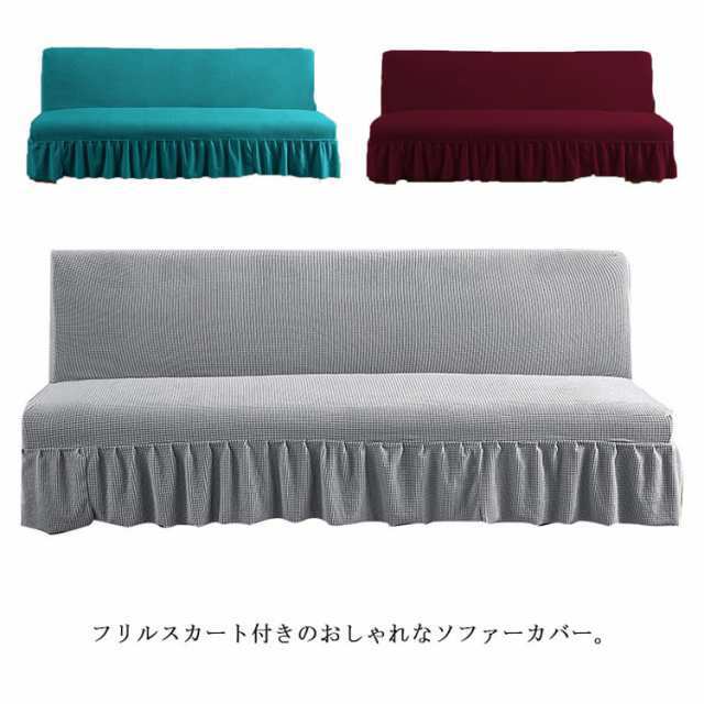 ソファーベッドカバー スカート付き ソファーカバー 3人掛け 2人掛け 肘なし 無地 伸縮 ソファ 替えカバー 洗える 北欧 ワッフル 模様替え おしゃれ ふんわり柔らい