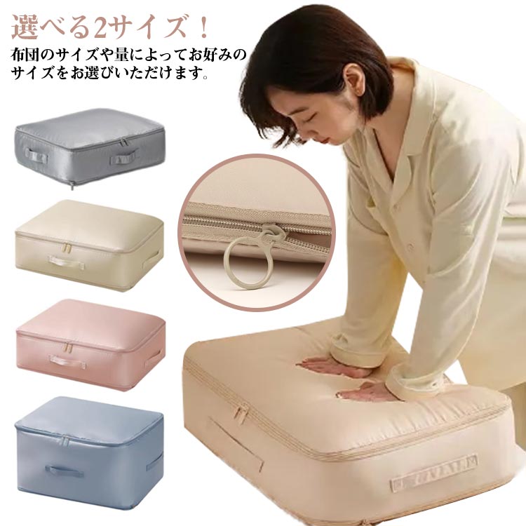 ■布団圧縮収納袋 クッション 布団収納 毛布 布団 布団圧縮収納袋 圧縮 ソファ 収納 カバー ふとん収納 掛け布団 2サイズ 持ち手付き おし