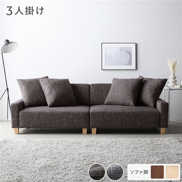 ■ソファ 3人掛け 単品 ココアブラウン 脚:ナチュラル 肘付き クッション ローソファ 低い フロアタイプ ロータイプ フロアソファ 大型 大