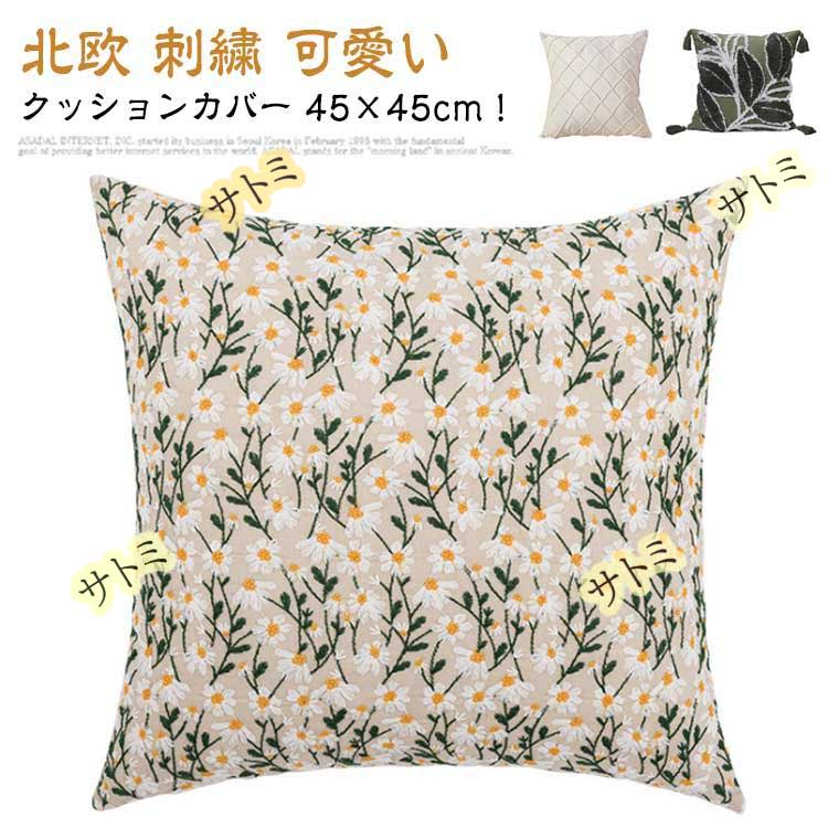 ドット 45cm×45cm もこもこ 白 カバー クッション 花柄 ベージュ フラワー 大きい 背当て 大きめ 北欧 クッションカバー 正方形 ソファ