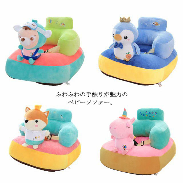 ■ベビー ソファ ベビーチェア ふわふわ ぬいぐるみ 椅子 イス お食事 クッション 座布団 腰ベルト付き ソフト ローチェア 保護 安定 ベビ