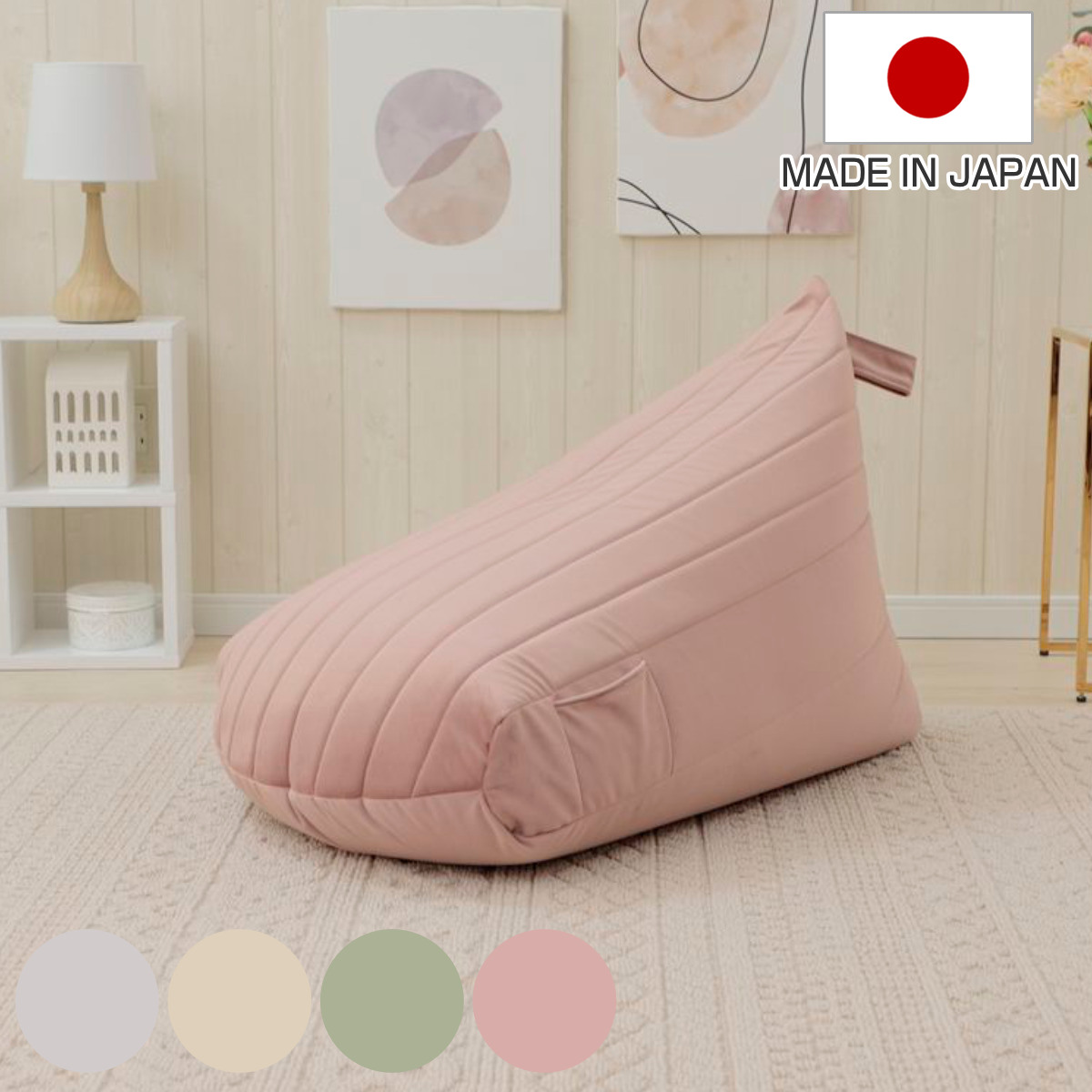 ■ビーズクッション ベロア 背もたれ ポケット付き 日本製 ( クッション ビーズ ミニ ソファ 三角 座椅子 1人掛け 軽量 コンパクト 取っ手