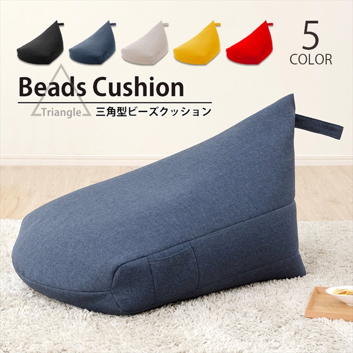 三角の型で身体にフィットする、オシャレなビーズクッション。従来のビーズに比べてヘタリにくい、独自開発のスゴビーズを使用。側面ポケットや、持ち運びに便利な取っ手など便利な機能付き。5色のカラーバリエーションからお選びいただけます。【キーワード】三角形 三角 三角型 ビーズクッション クッション フィット リラックス リラクゼーション へたれにくい 日本製 テレビ 映画 スマホ 読書 ごろ寝 昼寝 お昼寝 リビング 部屋 ワンルーム 一人暮らし 1人暮らし