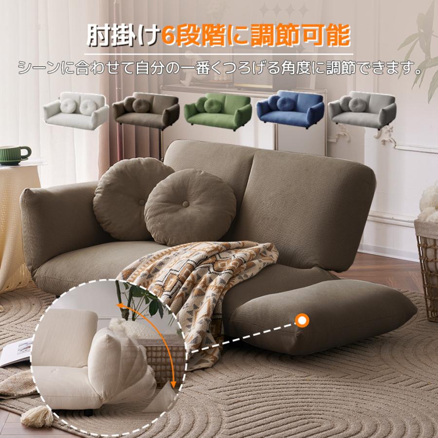 ソファ ソファベッド フロアソファ 2人掛け 3WAY コンパクト クッション2個付き ローソファ こたつ用 6段階リクライニング クッション付き 座椅子 2人掛けソファ