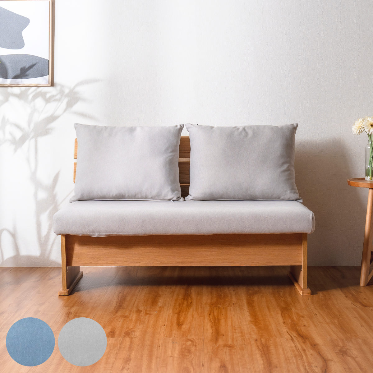 ■ソファ ダイニングソファ 2人掛け 幅120cm 座面下収納付 ( ソファー ダイニング 食卓椅子 木製 天然木 ダイニングチェア クッション イ