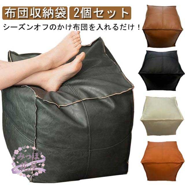 布団収納袋 クッションになる 2個セット カバーのみ 布団収納 クッション 布団収納ケース 布団ケース 座布団 ソファ ブランケット オットマン カバー コンパクト 寝具