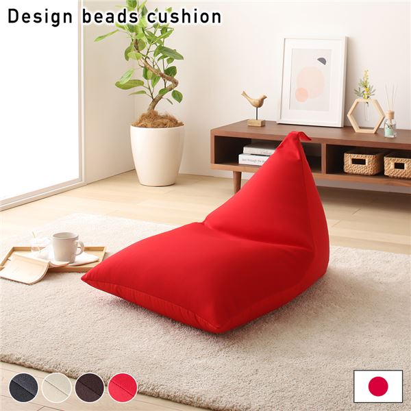 ■ビーズクッション ソファ レッド 日本製 リラックス 三角 背もたれ 軽量 取っ手付き クッション 1人掛け ファブリック スムース 生地 【