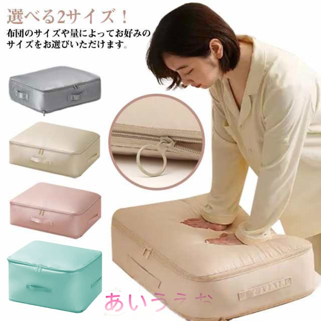 布団圧縮収納袋 2サイズ 圧縮 スペース 節約 布団収納 クッション ソファ 収納 布団 ふとん収納 掛け布団 毛布 持ち手付き カバー おしゃれ 布団収納ケース ふとん 布団 押入れ クローゼット 羽毛布団 耐久力 掃除機不要 新生活
